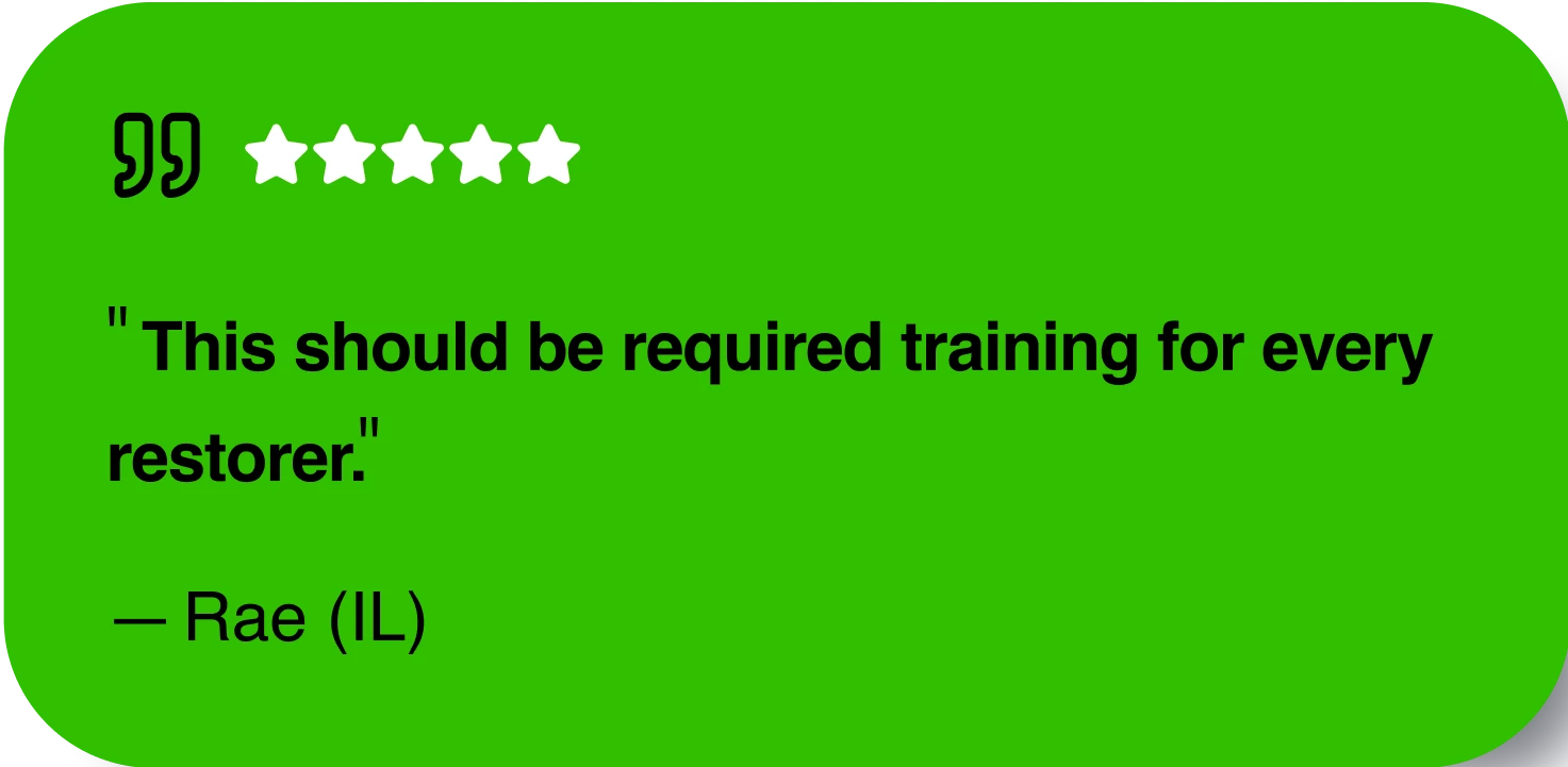 We make sure every lesson is practical, repeatable, and built for busy restoration pros.